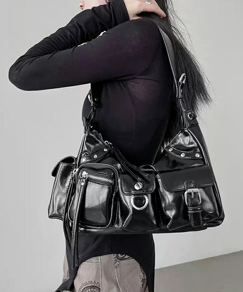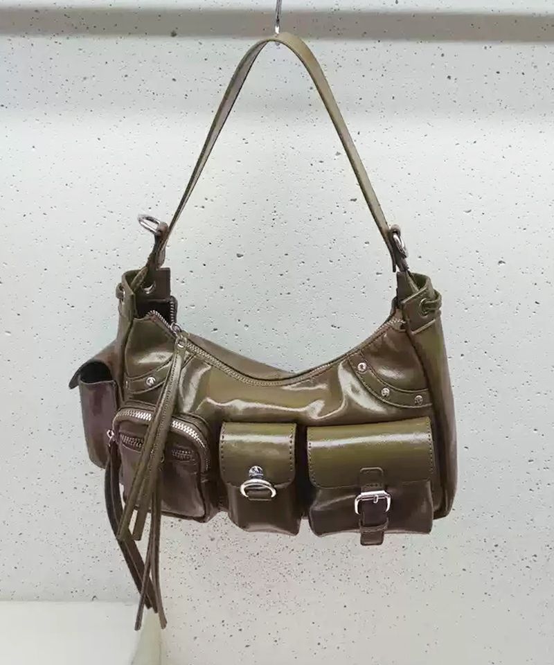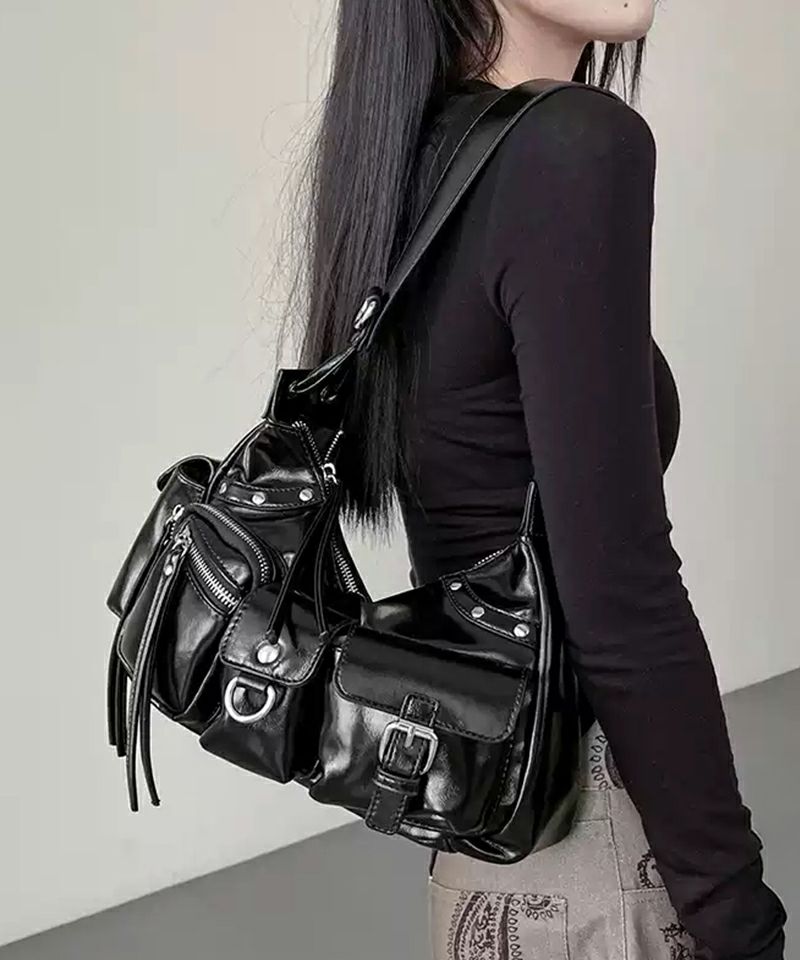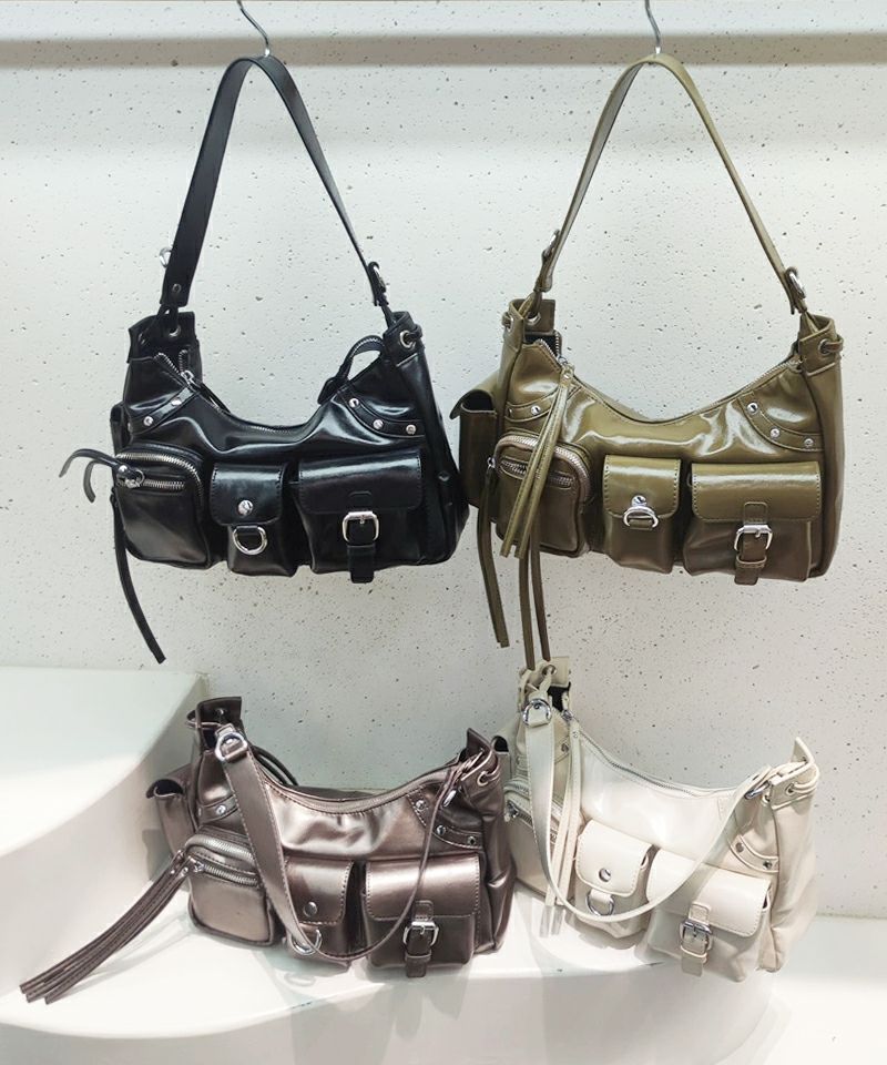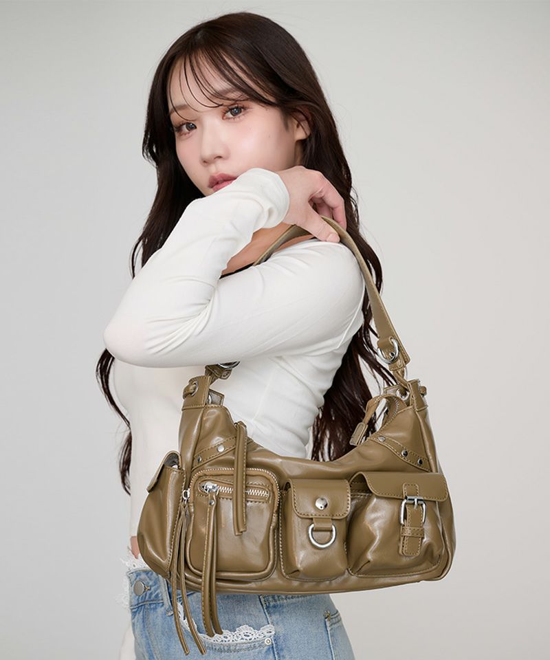 DAESE Select マルチポケット フェイクレザーショルダーバッグ/全4色