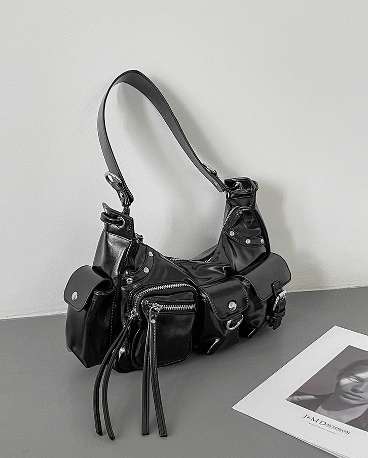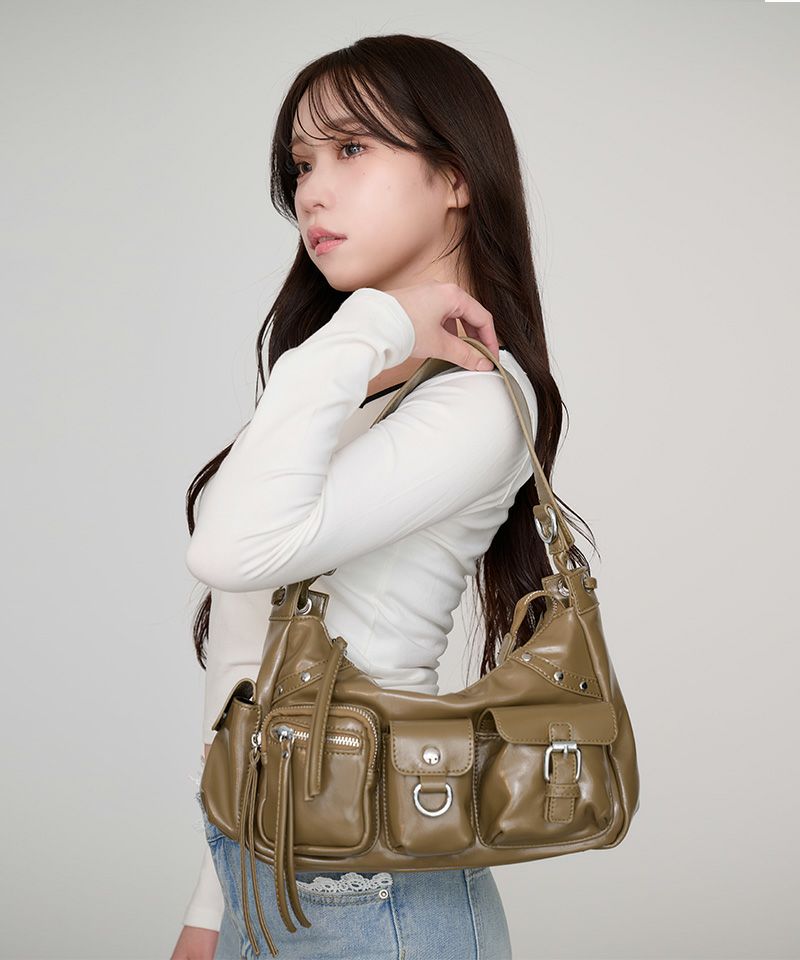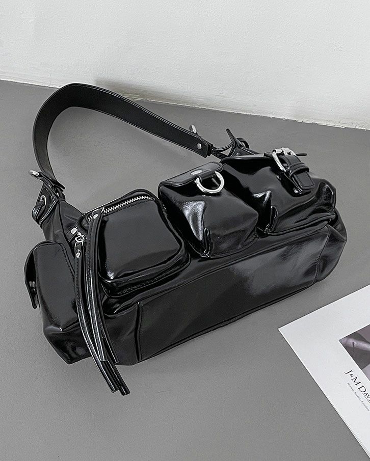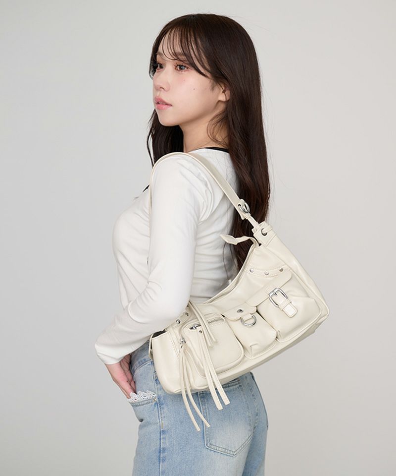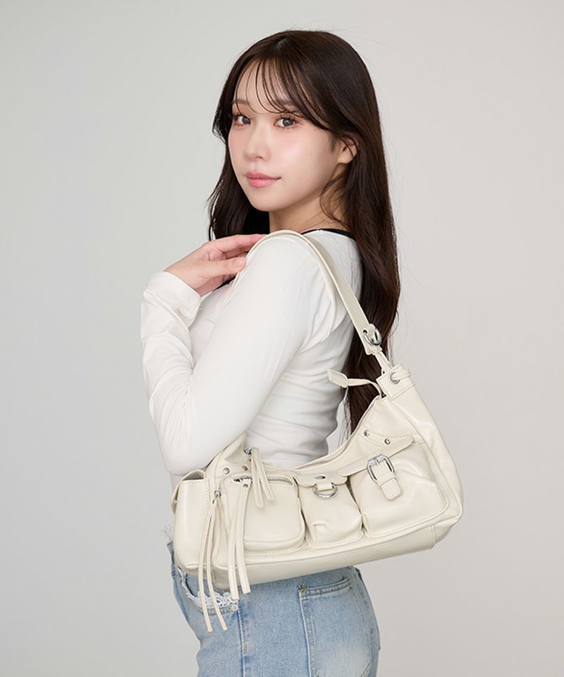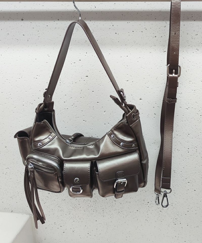 DAESE Select マルチポケット フェイクレザーショルダーバッグ/全4色