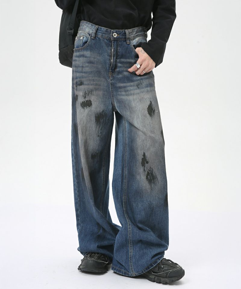 ■ハンドペイントでヨゴシ加工が施されたワイドデニム