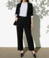ジャケットとセットアップ風に合わせて、大人のモードスタイルに。