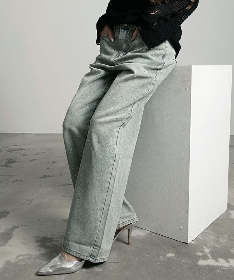 『DAESE SELECT/デセセレクト』から、ラインストーンデニムパンツの入荷です。 ■POINT ・キラキラと輝くラインストーンがちりばめられたデニムパンツ ・ハイウエストと程よいルーズ感で足がきれいに見えるシルエット ・きれいめからストリートまで幅広いコーデに相性抜群◎ ■STYLING ・ヒールのあるシューズと合わせると足長効果抜群 ・韓国カジュアルや、ストリートコーデを演出するならクロップ丈Tが相性抜群! ・涼しくなったらパーカー合わせでストリートコーデなど、通年で着まわせます。 ・Tシャツの裾を結んで合わせると、肌見せで一気にトレンド感! ぜひこの機会にお試しください。 ※サイズは若干異なる場合がございます。あらかじめご了承くださいませ。 ※モデル画像は照明などの影響により実際の商品と異なる場合がございます。