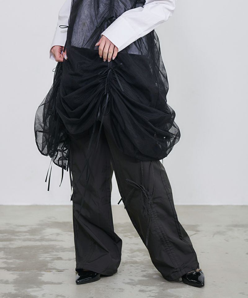 『DAESE SELECT/デセセレクト』から、リボンイージーパンツの入荷です。 ポリエステルの光沢ある生地を使用し、程よいゆったりとしたシルエットが快適な履き心地を提供します。 ウエストはゴム仕様で、着脱が簡単でリラックスフィット。 両足にデザインされたリボンを結ぶことによりギャザーアクセントを付けられるデザインで、可愛いアクセントをつけることができます。 可愛らしさと快適さを兼ね備えたアイテムで、様々なシーンにマッチします。 また、お好みのカラーを豊富なバリエーションからお選びいただけます。 ぜひこの機会にお試しください。 ※サイズは若干異なる場合がございます。あらかじめご了承くださいませ。 ※モデル画像は照明などの影響により実際の商品と異なる場合がございます。