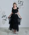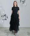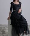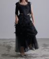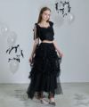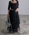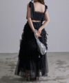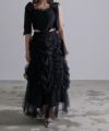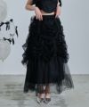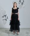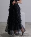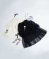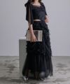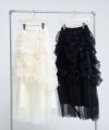 ロングスカート ボトムス チュール ボリューム シアー フェミニン 大人 甘め リボン バレエコア フレンチガーリー ブラック 黒 ホワイト 白 アイボリー セットアップ シャーリング
