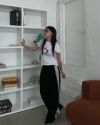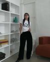 トレンドのクロップトップスと合わせるのもおすすめ。