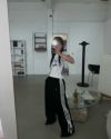 ベロア風の生地で、カジュアルなサイドラインスウェットでもスタイリッシュな印象に。