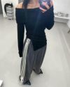 韓国ファッション おしゃれ カジュアル 春 夏 秋 冬 ボトムス パンツ ロングパンツ ベロアパンツ ラインパンツ カジュアル リボン ワイドパンツ サイドライン バレエコア ブロークコア アクビファッション レディース Y2K ストリート ブラック 黒 韓国系 地雷系 サブカル系 ピープス系 Y2Kファッション オルチャン 地下アイドル メン地下 韓スト 韓流 KPOP アイドル K-POP