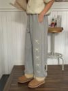韓国ファッション おしゃれ カジュアル 春 夏 秋 冬 ボトムス パンツ ロングパンツ カジュアル リボン ワイドパンツ リボンパンツ スウェットパンツ バレエコア ブロークコア アクビファッション レディース Y2K ストリート ブラック 黒 韓国系 地雷系 サブカル系 ピープス系 Y2Kファッション オルチャン 地下アイドル メン地下 韓スト 韓流 KPOP アイドル K-POP