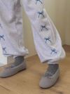 穿き心地の良いスウェット生地に可愛いリボンをプリントしてリラックス感とフェミニンさが絶妙にマッチしたアイテムとなっています。