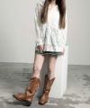 また、裾のフリンジが揺れる様子が、スカートに動きを与え、ボヘミアンな雰囲気を醸し出します。
