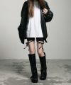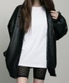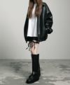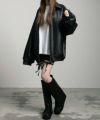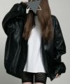 韓国ファッション レザーブルゾン トラッカージャケット トラッカーブルゾン レザージャケット フェイクレザー PUレザー ジャケット アウター ブラック 黒 ブロークコア アクビファッション おしゃれ かわいい バレエコア カジュアル 春 夏 秋 冬 レディース ストリート 羽織 韓国系 地雷系 サブカル系 ピープス系 Y2Kファッション オルチャン 地下アイドル メン地下 韓スト 韓流 KPOP アイドル K-POP