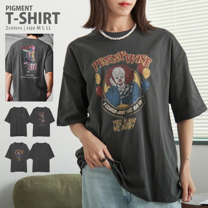 Tシャツ メンズ レディース 半袖 ブランド 半袖Tシャツ IT イット 映画Tシャツ ホラー映画 グラフィックTシャツ ピエロ スティーブンキング ペニーワイズ プリントT ピグメント ヴィンテージ風 ビンテージ風 古着風 古着テイスト ロックT バンドT風 ストリート ストリート系 ストリートファッション 韓国 韓国系 韓国ファッション アメカジ 下北沢 下北系 モード系 古着男子 古着女子 体型カバー ゆったりサイズ ビッグT オーバーT ユニセックス カップルコーデ ペアコーデ 春 夏 ブラック 黒 スミクロ 夏服 トレンドアイテム プレゼント ギフト 誕生日 記念日 メンズファッション レディースカジュアル
