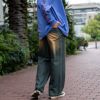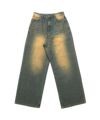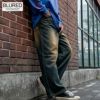オーバーダイ加工でヴィンテージライクな仕上がりと、ワイドなシルエットが目を惹くデニムパンツ。
