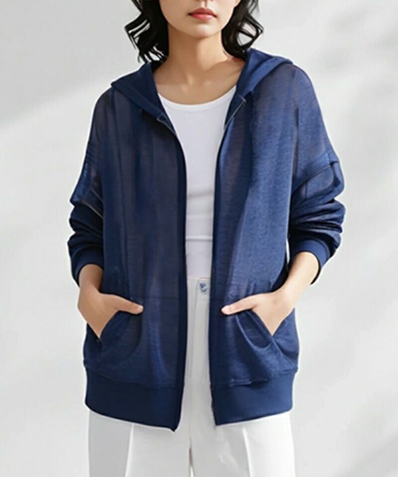 軽やかな透け感が魅力の、春夏にぴったりなサマーニットパーカー。