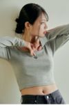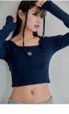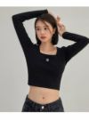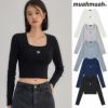 長袖Tシャツ 長袖カットソー ロンt ロンティー クロップド へそ出し トップス スクエアネック ムアムア muahmuah ムアムア muahmuah ムーアムーア 韓国ブランド 韓国系 インポート ファッション 服 レディース ブランド 韓流 KPOP アイドル K-POP カジュアル ストリート