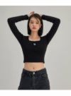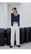 韓国ブランド『muah muah/ムーアムーア』からSQUARE NECK CROP LONG SLEEVE /スクエアネック クロップドTシャツ カットソー インナーの入荷です。