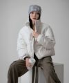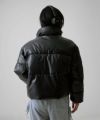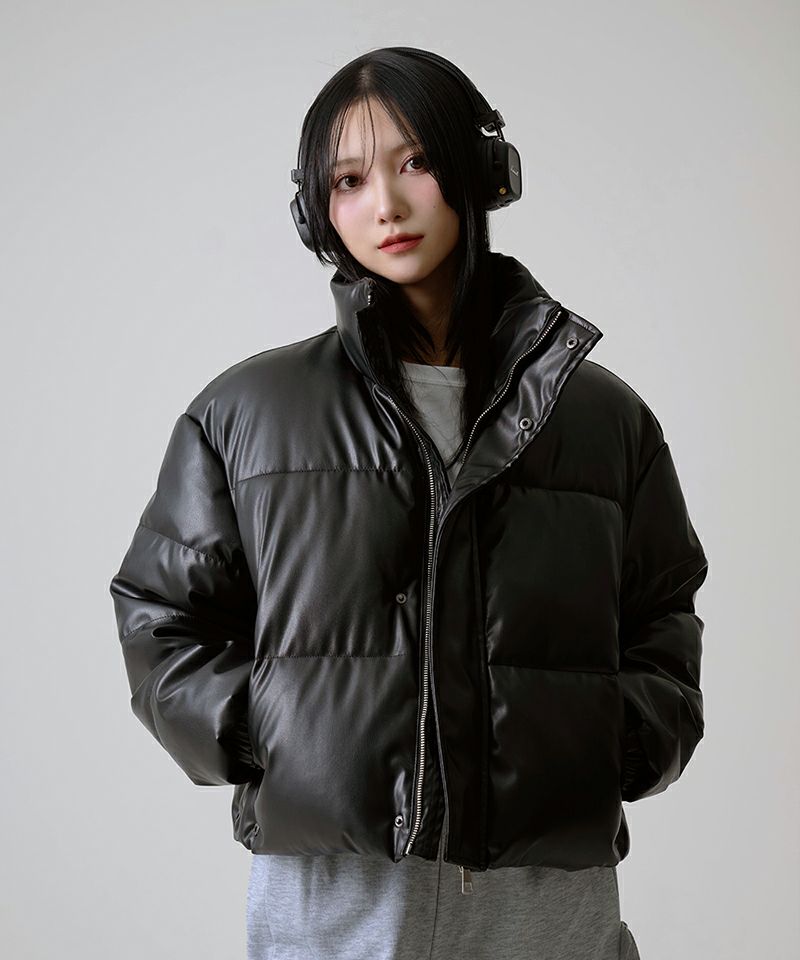 ・艶感のあるフェイクレザー素材がモード感たっぷりのダウンジャケット