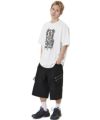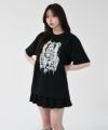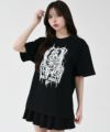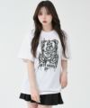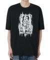 フロントに描かれたアート風ベアグラフィックが印象的なデザインTシャツ。