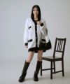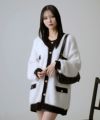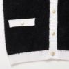 衿ぐりや袖、ポケットの配色切り替えが上品で高見えするシャギーニット配色長袖カーディガン。