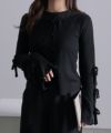 さりげないリボンディテールが甘すぎない大人めな印象に。