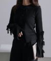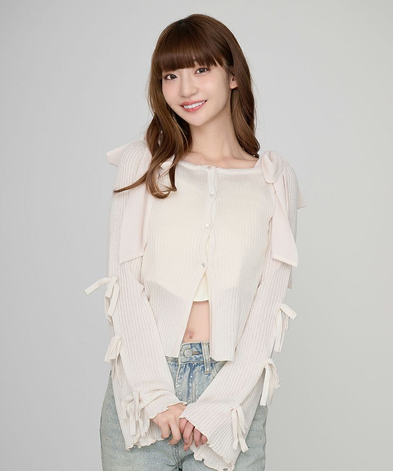 袖にリボンがあしらわれたニットカーディガン。