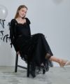 オフショルデザインでデコルテラインを美しく見せ、女性らしさを引き立てます。