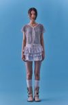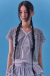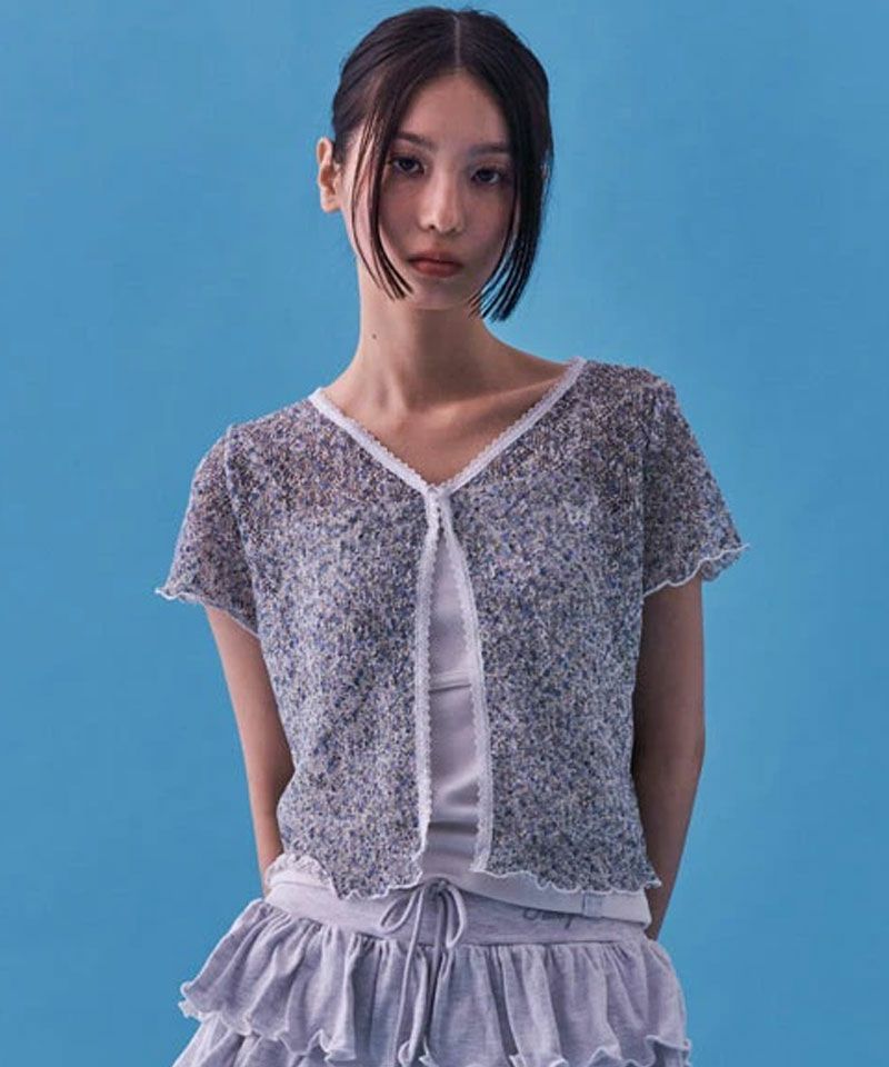 フリル仕様のフロントラインに小花柄の生地、胸元にバタフライ刺繍と可愛い要素を存分に表現したクロップドカーディガン!