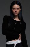 胸元にはブランドの象徴である蝶のワンポイントが施され、フェミニンな仕上がりに。