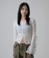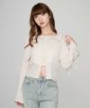 Ribbon Sleeve Off-Shoulder Knit Cardigan / 2 colors