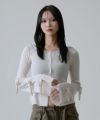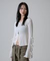 レディース 夏用 春夏 薄手 リボン フリル フレンチガーリー バレエコア オフショル オフショルダー 袖 フレア ピタニット リブ サマーカーディガン ホワイト 白 ブラック 黒 アイボリー シンプル 韓国ファッション 韓国系