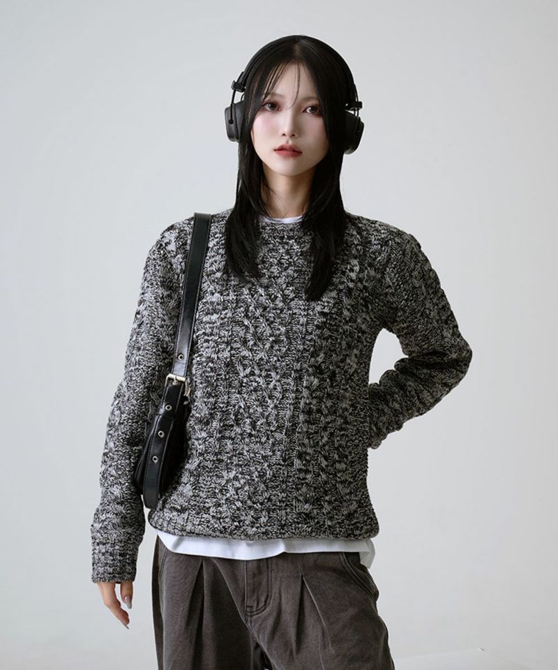 暖かみを感じるケーブル編みはこれからの季節に最適。