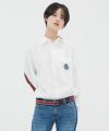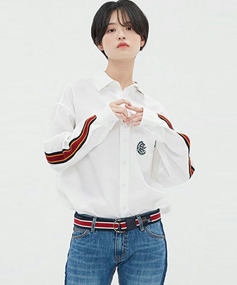 韓国ブランド 韓国ファッション 長袖 シャツ Yシャツ ライン ブラウス 制服 リボン ロゴ ユニセックス メンズ レディース 白 ホワイト 韓国系 地雷系 サブカル系 ピープス系 Y2Kファッション オルチャン 地下アイドル メン地下 韓スト 韓流 KPOP アイドル K-POP