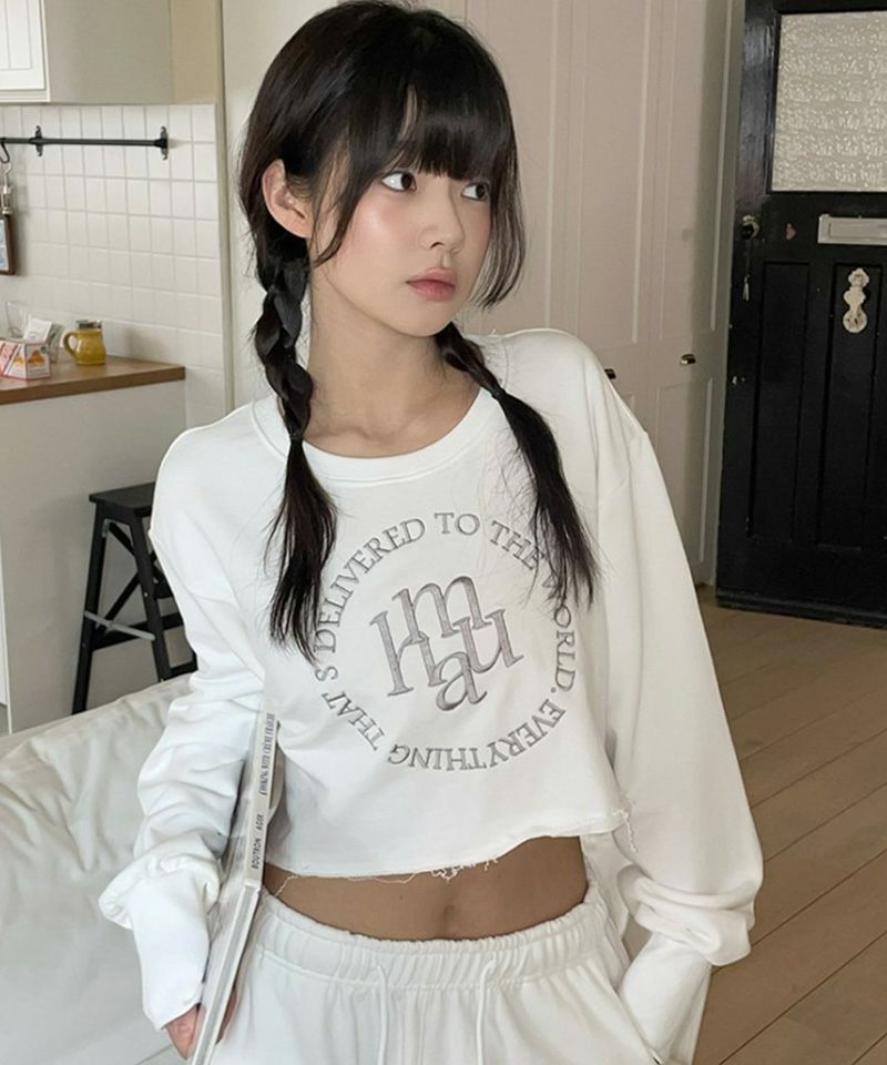 韓国ブランド『muah muah/ムーアムーア』から、STITCH LOGO CROP MTM/ステッチロゴクロップスウェットシャツの入荷です。