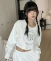韓国ファッション おしゃれ カジュアル 春 夏 秋 冬 トップス ジャージ スウェット プルオーバー カジュアル ブロークコア アクビファッション レディース Y2K ストリート 黒 ブラック 白 ホワイト アイボリー 韓国系 地雷系 サブカル系 ピープス系 Y2Kファッション オルチャン 地下アイドル メン地下 韓スト 韓流 KPOP アイドル K-POP