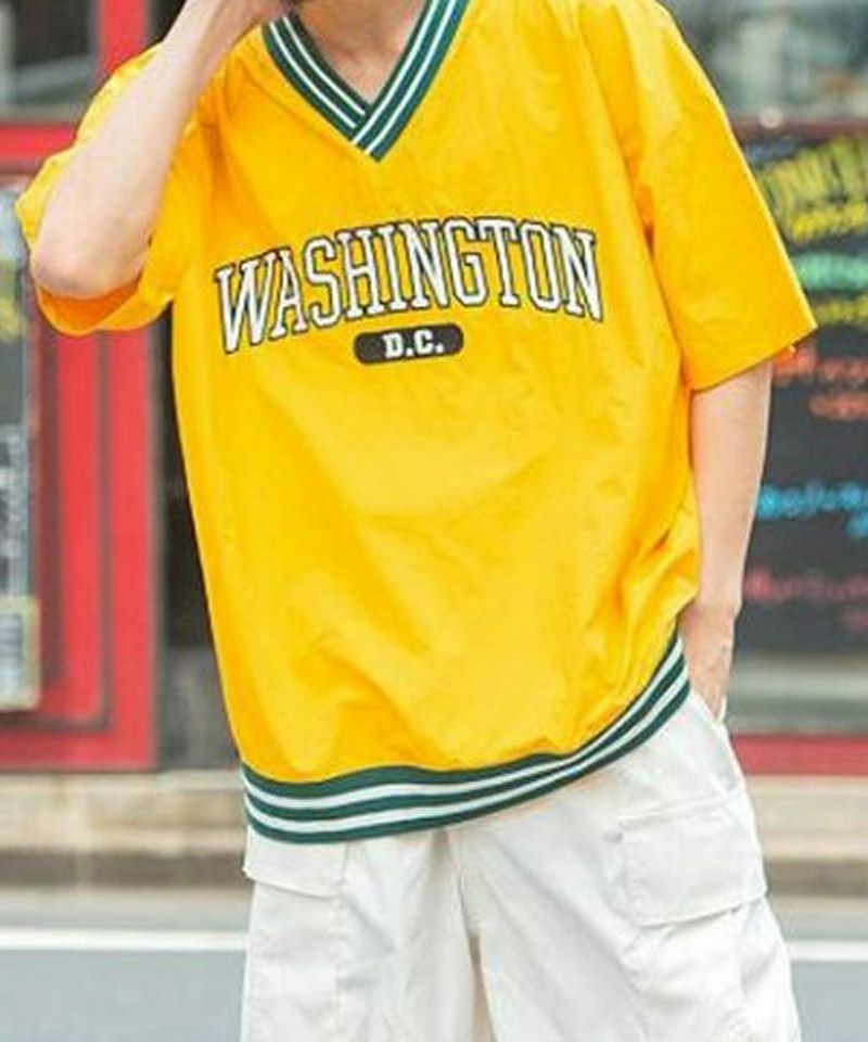 Quash ラインリブ布帛カレッジTシャツ/全4色