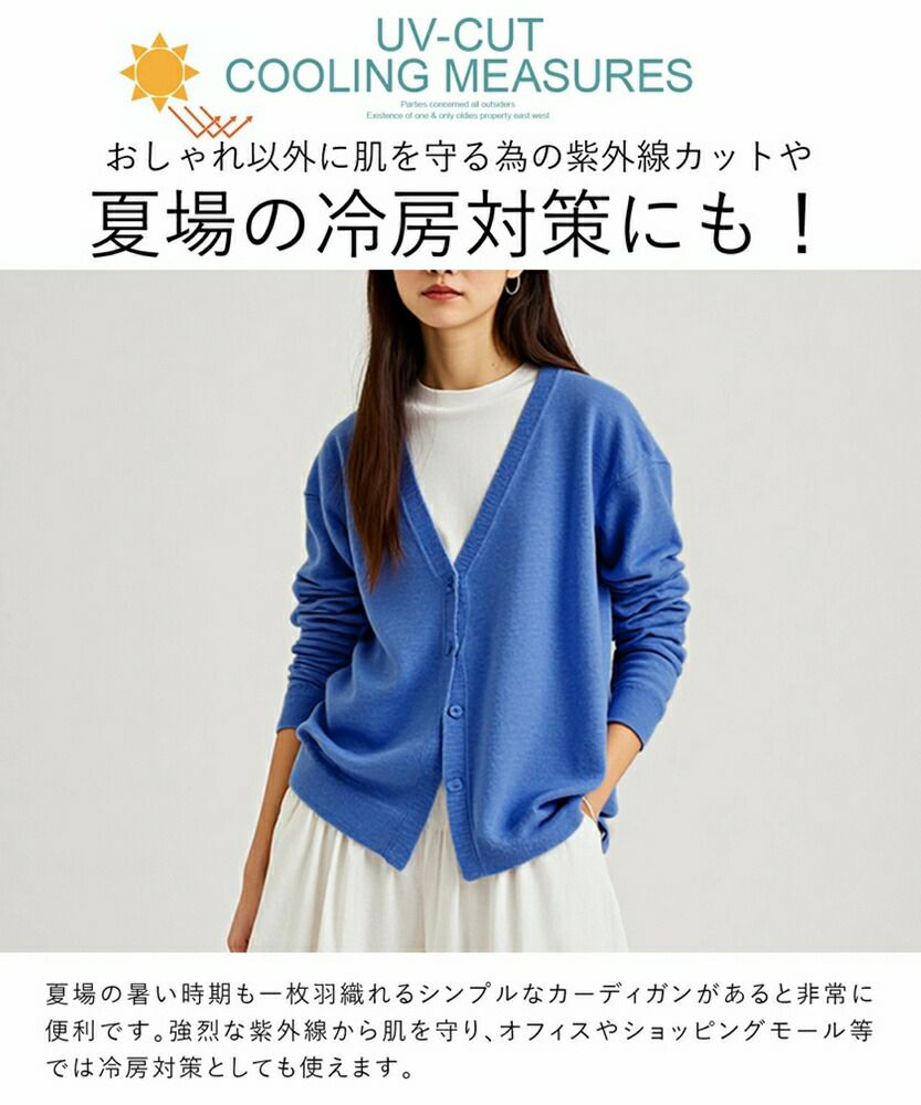 他の画像を見る カーディガン レディース ボタンカーディガン 羽織り 薄手ニット 紫外線対策 冷房対策 セミルーズ 体型カバー 上品 無地 ゆったり 春 夏 秋 軽やか きれいめ 大人可愛い ベージュ ブラック ブルー VICCI ビッチ 販売価格 ¥ 3,480 税込 カートに入れる お気に入りに登録する